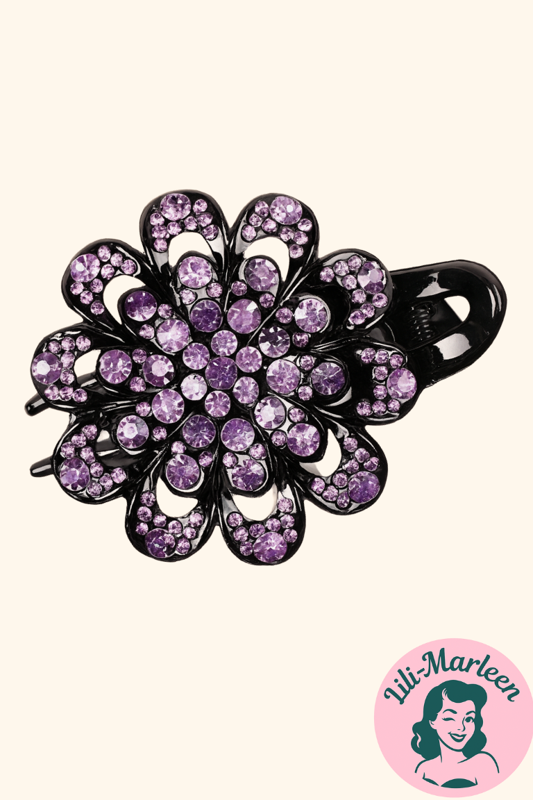Hårklips/hårklemme - stor blomst med glitrende sten, lilla