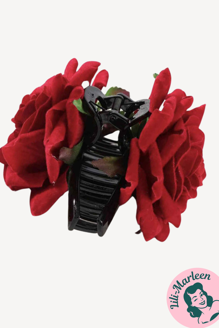 Style dit hår nemt og hurtigt med vores hårklips/hårklemme, der passer perfekt til både hverdag og fest. Den elegante udsmykning med røde roser gør den til et unikt tilbehør, der komplementerer dine kjoler og sko og giver dig et feminint og sofistikeret udtryk.