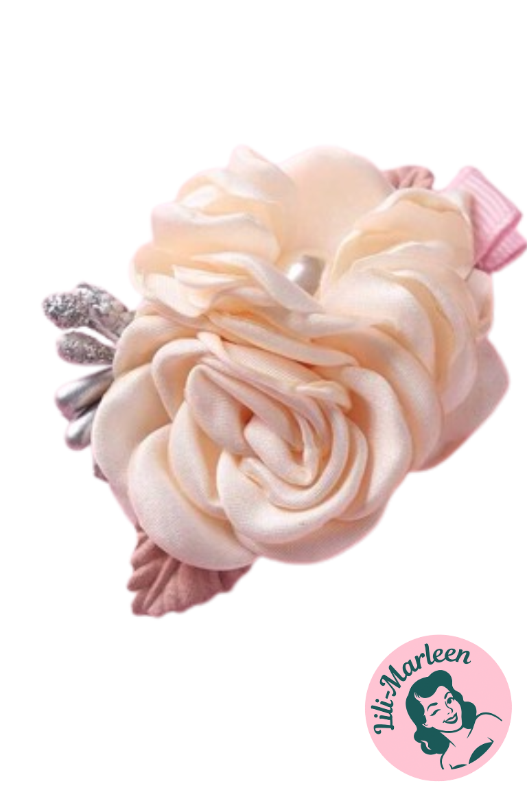 Elegant Rose – Hårklips med Blomster & Perler i Creme, Rosa og Sølv