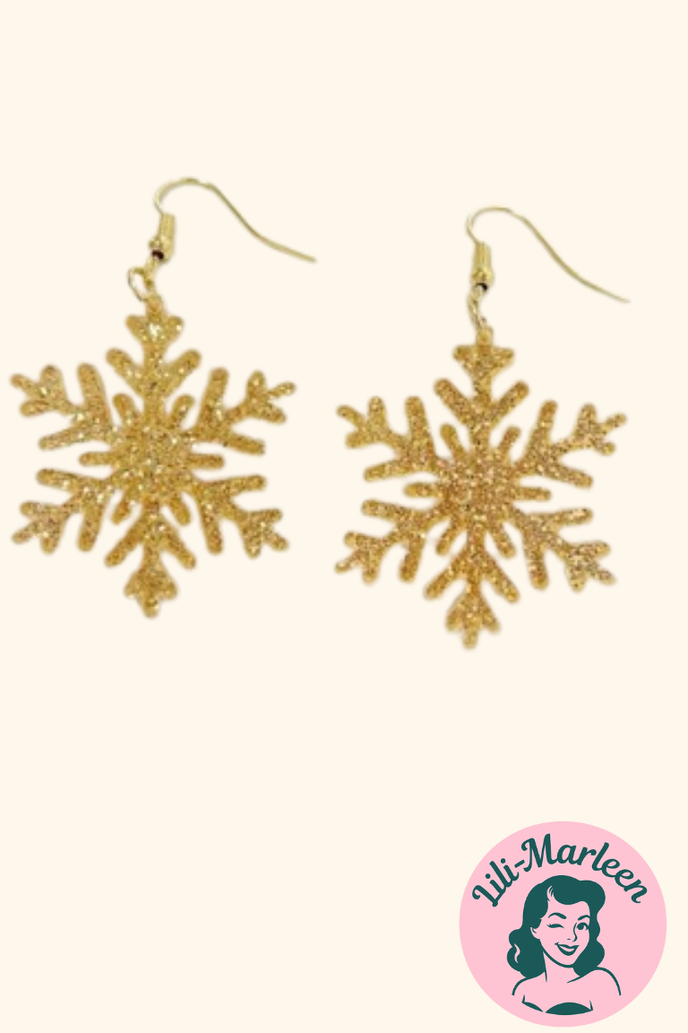 Hængeøreringe – Gyldne Snefnug - Festlige juleøreringe i guldglimmer