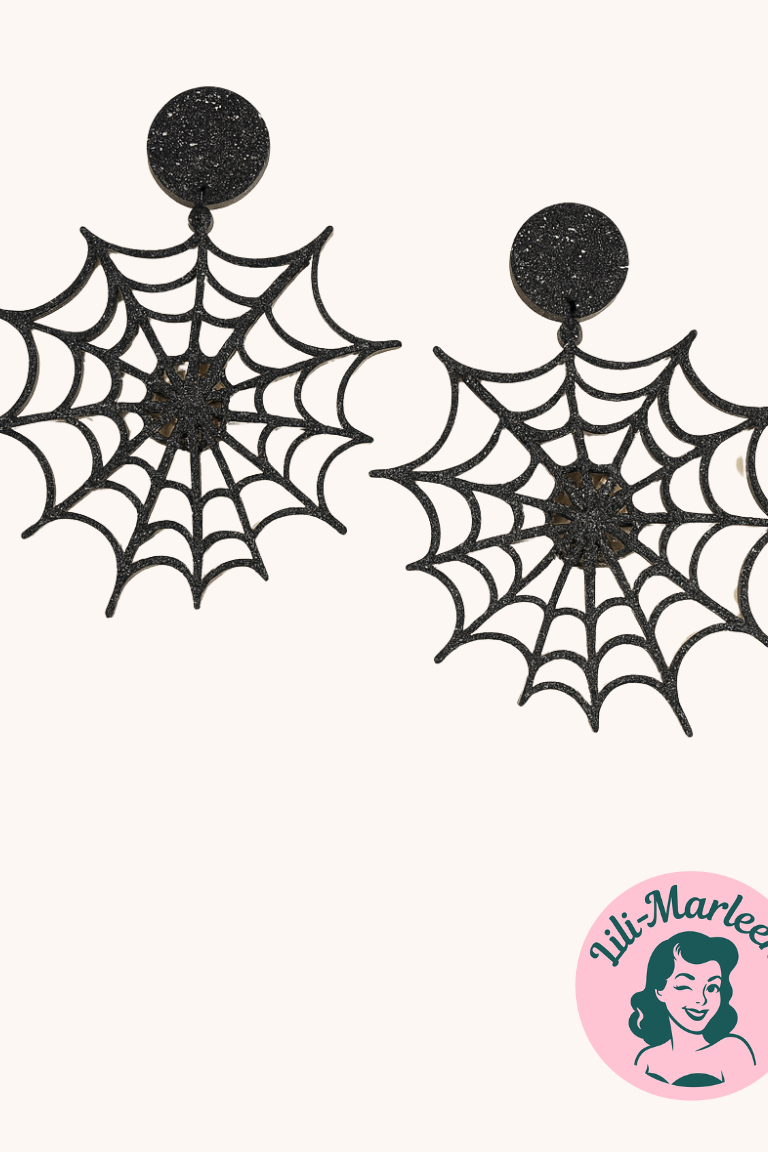 Giv dit look et dramatisk og legende twist med disse sorte glimmerøreringe i edderkoppespind-design. Perfekte til Halloween, temafest eller når du vil tilføje lidt ekstra mystik til din stil. De store, iøjnefaldende spind danner et unikt statement, der kombinerer glamour og kant.