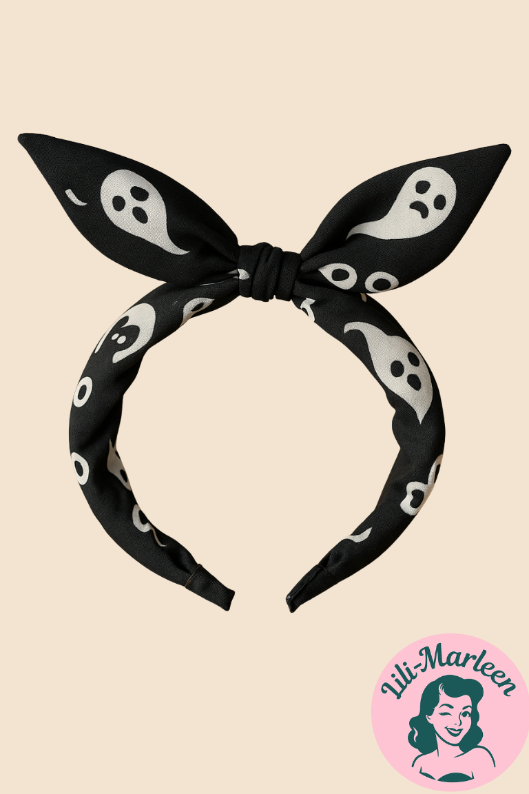 Halloween Hårbøjle – Sort med Hvide Spøgelser og Knude
