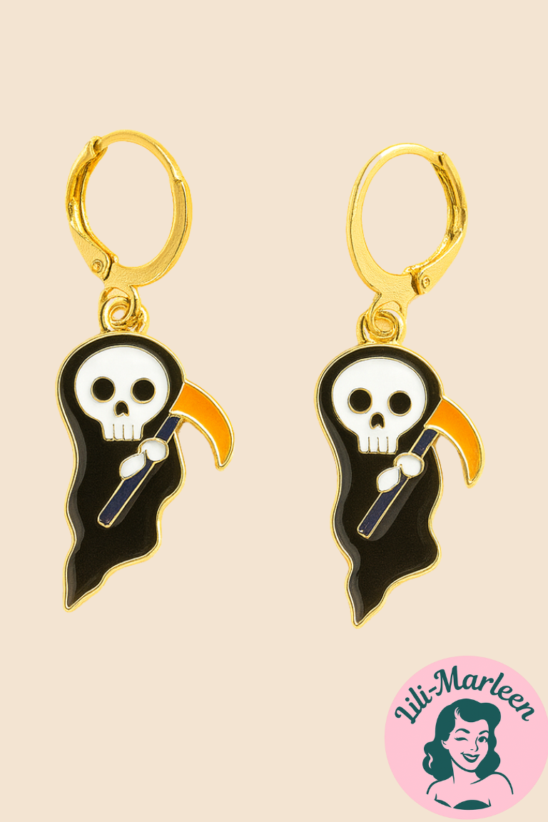 Halloween Øreringe – Døden med Le i Sort og Guld