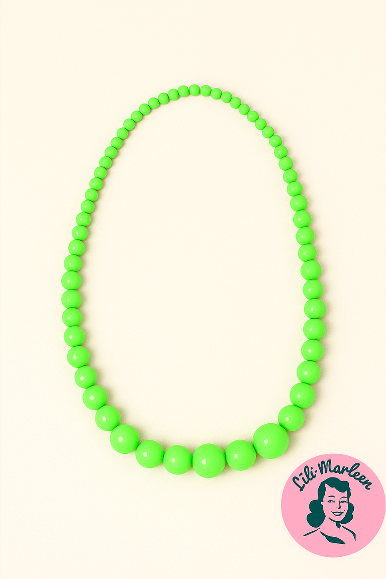 #MissDivaFavorit #græsgrønne Halskæde #RetroPerlekæde #VintageSmykker #PlastperlerMedStil #LiliMarleenStyle #FarverigeAccessories #50erInspiration