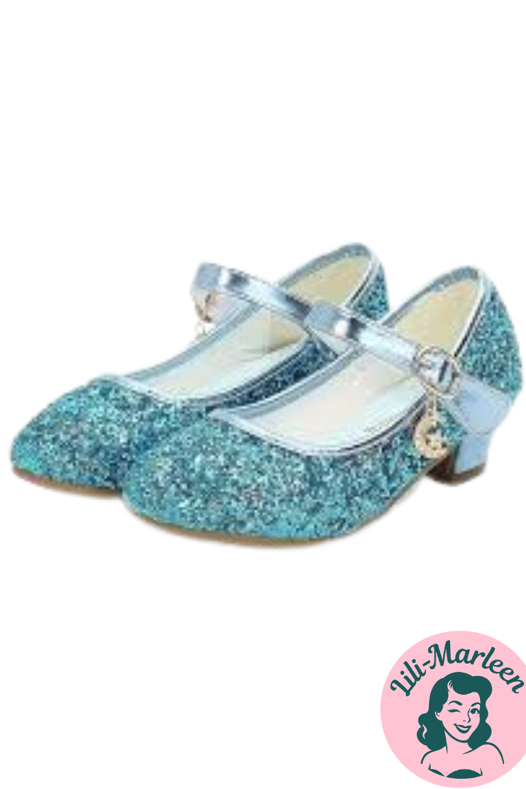 Helena er en sød og festlig børnesko i smuk turkis glitter med lille hæl. Skoen har en elegant rem med skjult velcro-lukning, så den sidder godt på foden, samtidig med at den er nem at tage af og på. Perfekt til små prinsesser, der elsker at glitre til festlige lejligheder.
