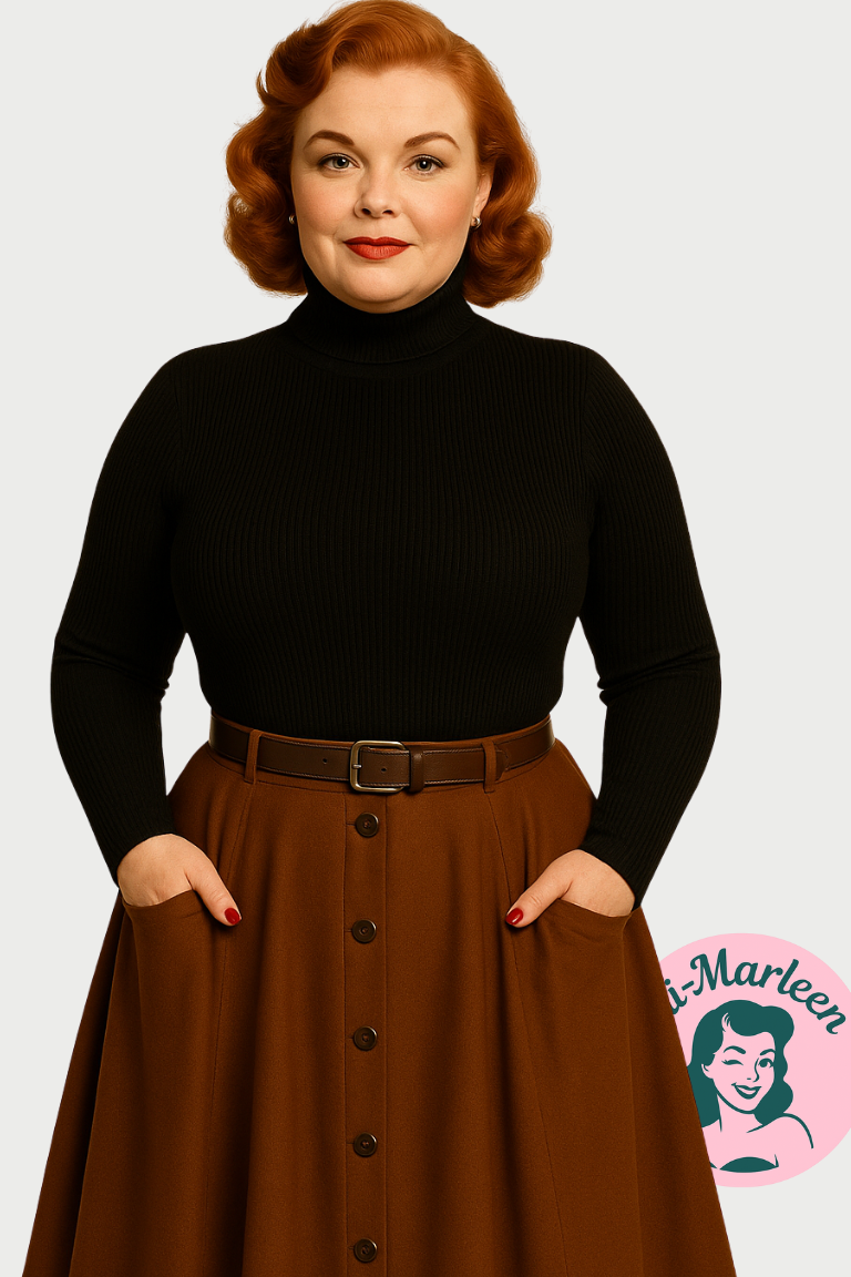 Opgrader din garderobe med SPIROS højhals i sort – en tidløs klassiker, der er både stilfuld og alsidig. Perfekt til både hverdag og fest, og uundværlig til vintage-elskere og kvinder, der elsker et elegant look.