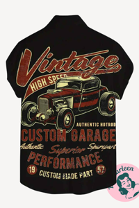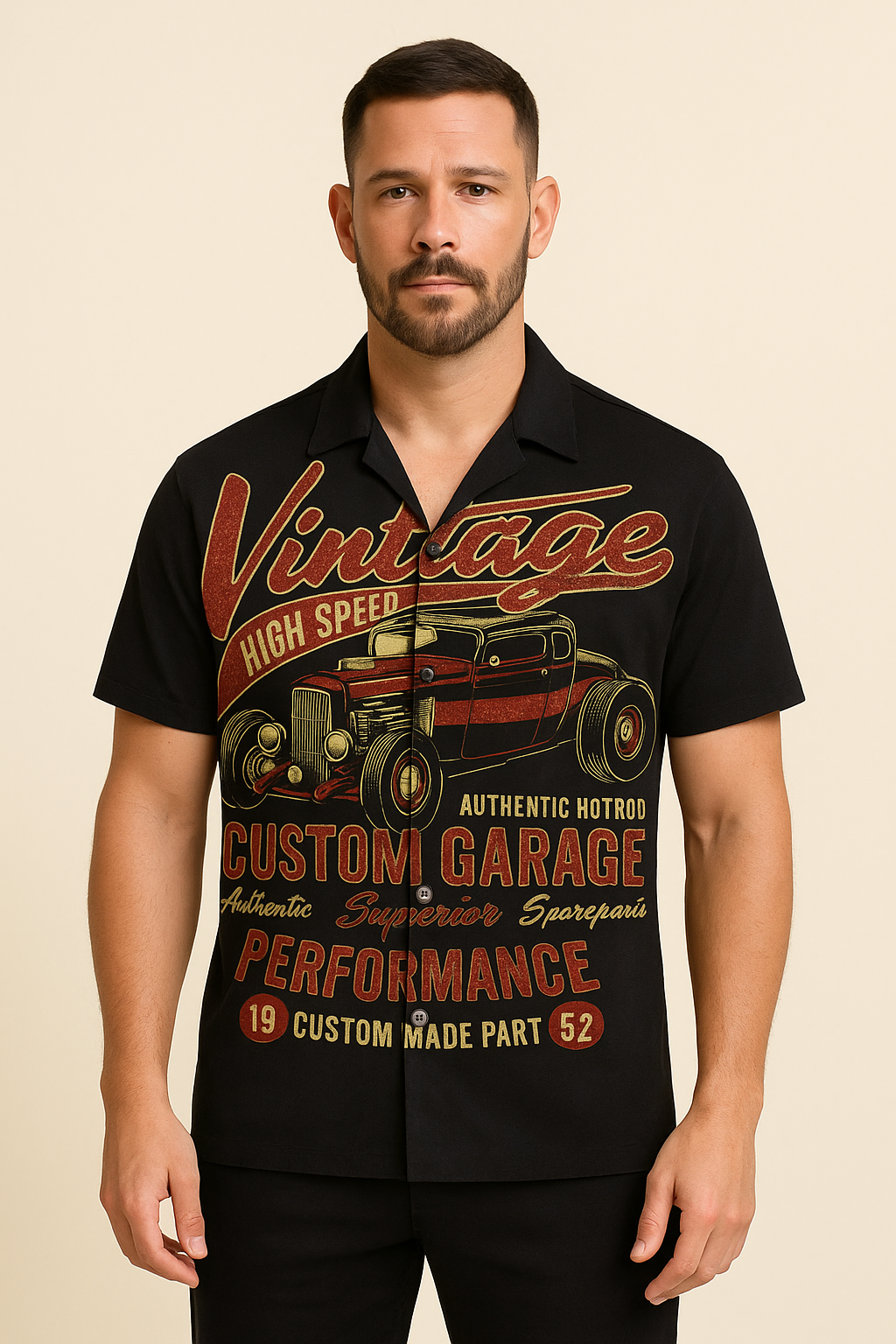Hotrod Rebel – Kortærmet Herreskjorte med Vintage Garage & Custom Car Print