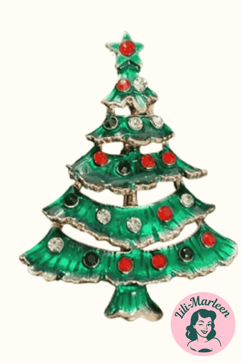 Tilføj et strejf af klassisk julemagi til dit outfit med Christmas Charm – en smuk vintage-inspireret broche formet som et juletræ, pyntet med funklende røde og klare sten. Den grønne emalje og de fine detaljer giver brochen et elegant, nostalgisk udtryk, som passer perfekt til både kjoler, jakker og cardigans.