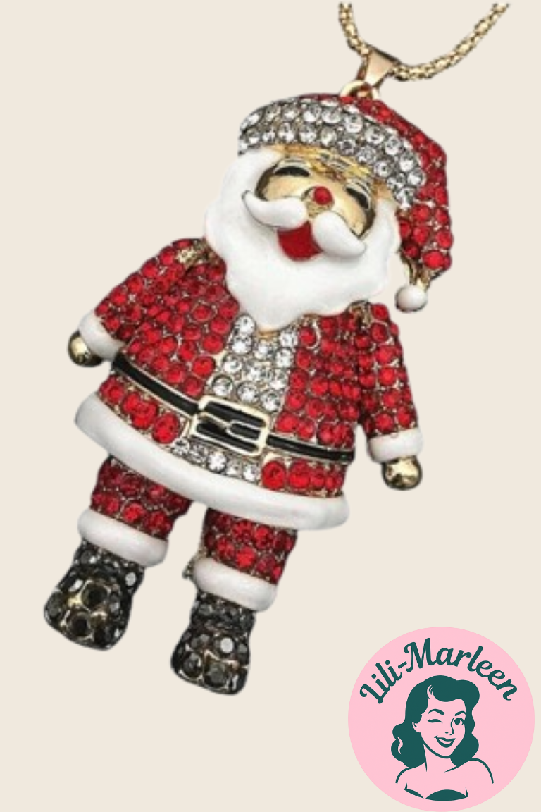 Denne festlige halskæde er perfekt som gaveidé eller som prikken over i’et til dine julefester. Gør dit outfit unikt og funklende med et strejf af julemandens magi.