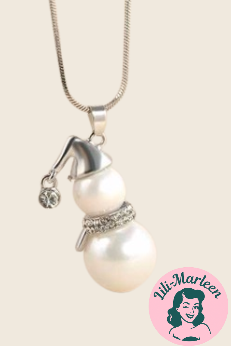 Pynt dig til julens fester med denne elegante, lange halskæde! Den sølvfarvede snemand med en fin perledetalje er perfekt til at fuldende dit festlook og matcher vores feminine kjoler og sko smukt.