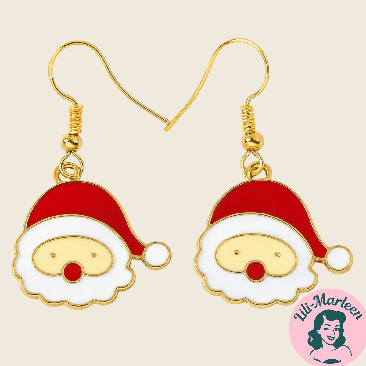 Lad juleglæden skinne med disse charmerende hængeøreringe formet som julemandens glade ansigt. Det klassiske røde og hvide design kombineret med gyldne detaljer giver et varmt, nostalgisk udtryk – perfekt til at bringe et smil frem i den travle decembertid. Et lille, festligt statement, der passer til både hverdag og julefrokost.