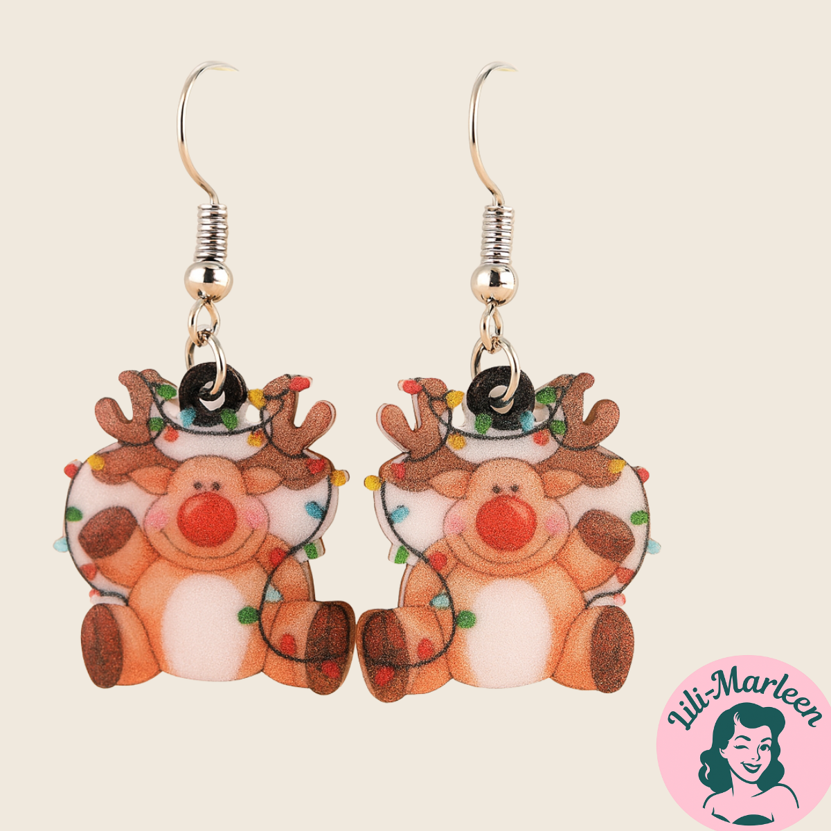 Øreringe – Merry Rudolf bringer varme, grin og ægte juleenergi til dit outfit – små akryl-rensdyr, der minder dig om, at december er til for at blive fejret med hjertet forrest og næsen rød.