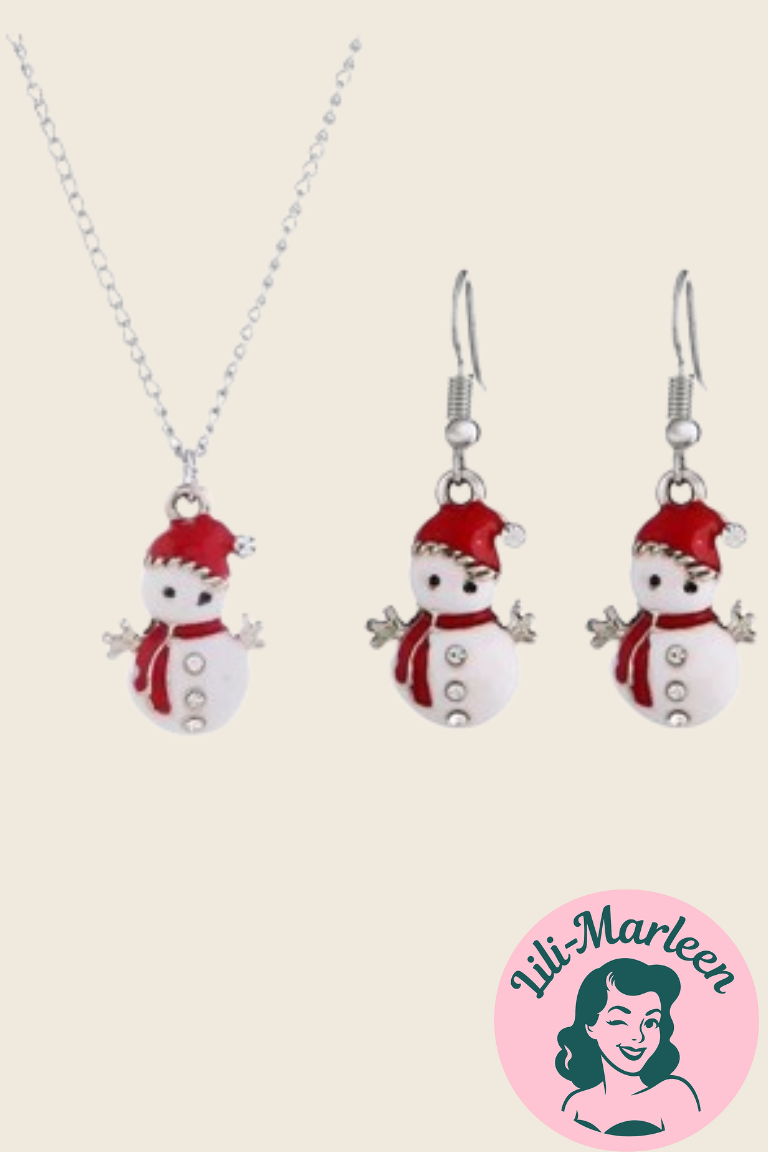 Skru op for julehyggen med dette charmerende smykkesæt, hvor snemændene spreder glæde og vinterstemning. Med deres røde huer, halstørklæder og små detaljer bringer de et legende og festligt præg til dit outfit.