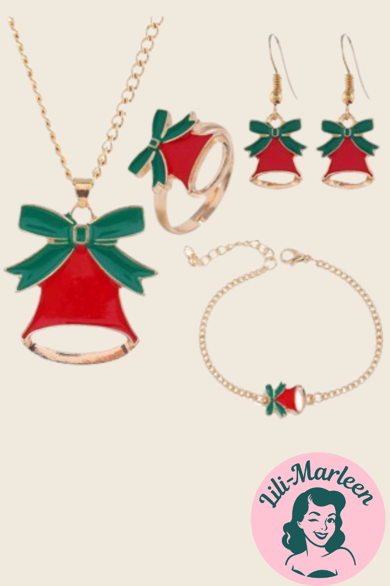 Julesæt med Klokker – Halskæde, Øreringe, Ring og Armbånd