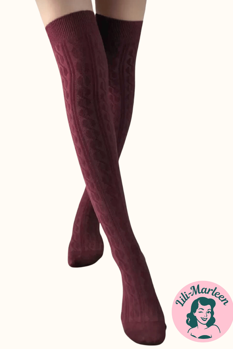 Knæsokker – Vinrød med Kædestrik – Varme, elegante og vinterlækre