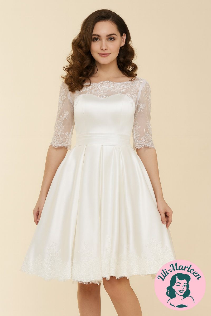 Penelle – Smuk og klassisk konfirmationskjole i satin og blonder