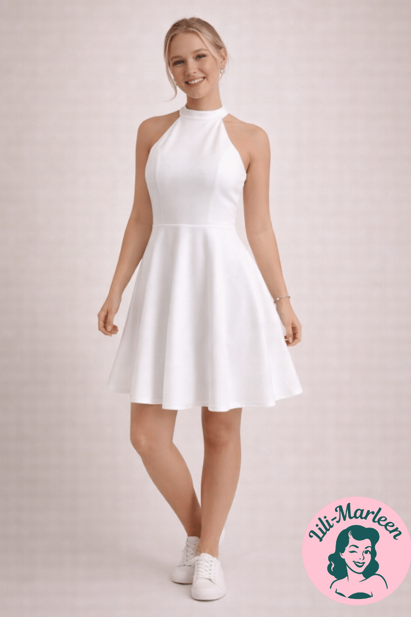 Riannah-kjolen kombinerer klassisk elegance med moderne enkelhed. Den høje halslukning og det rene design gør den til et stilfuldt valg, perfekt til en konfirmation, hvor elegance og komfort er i fokus.