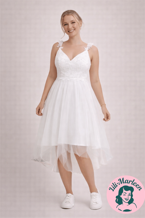 Gør din konfirmationsdag magisk med Saga, en sød hvid kjole med stropper, en delikat blondeoverdel og et chiffon skørt i flere længder. Denne kjole emmer af elegance og lethed og er perfekt til dig, der ønsker at stråle på din store dag.