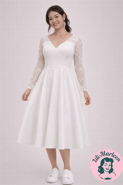 Design: Blød blondeoverdel med et skørt på 65 cm for et klassisk og elegant udtryk.