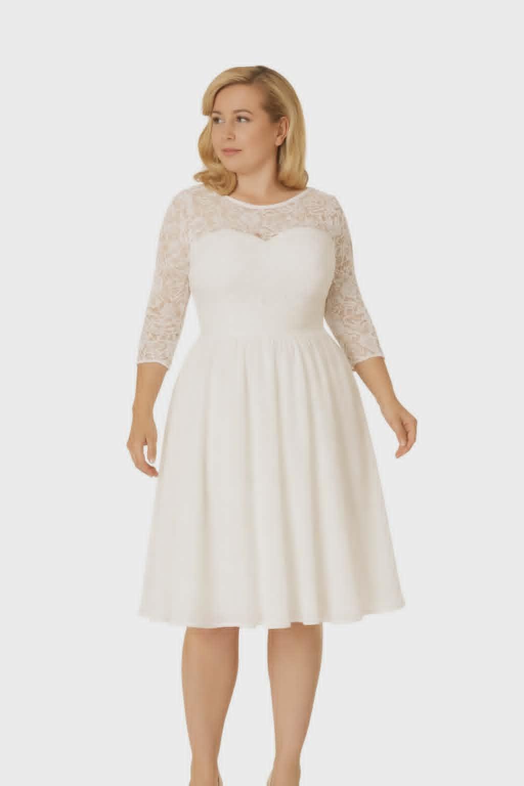 kort konfirmations/gallakjole – Ida Anette, hvid – Smuk lang kjole med blondeærmer