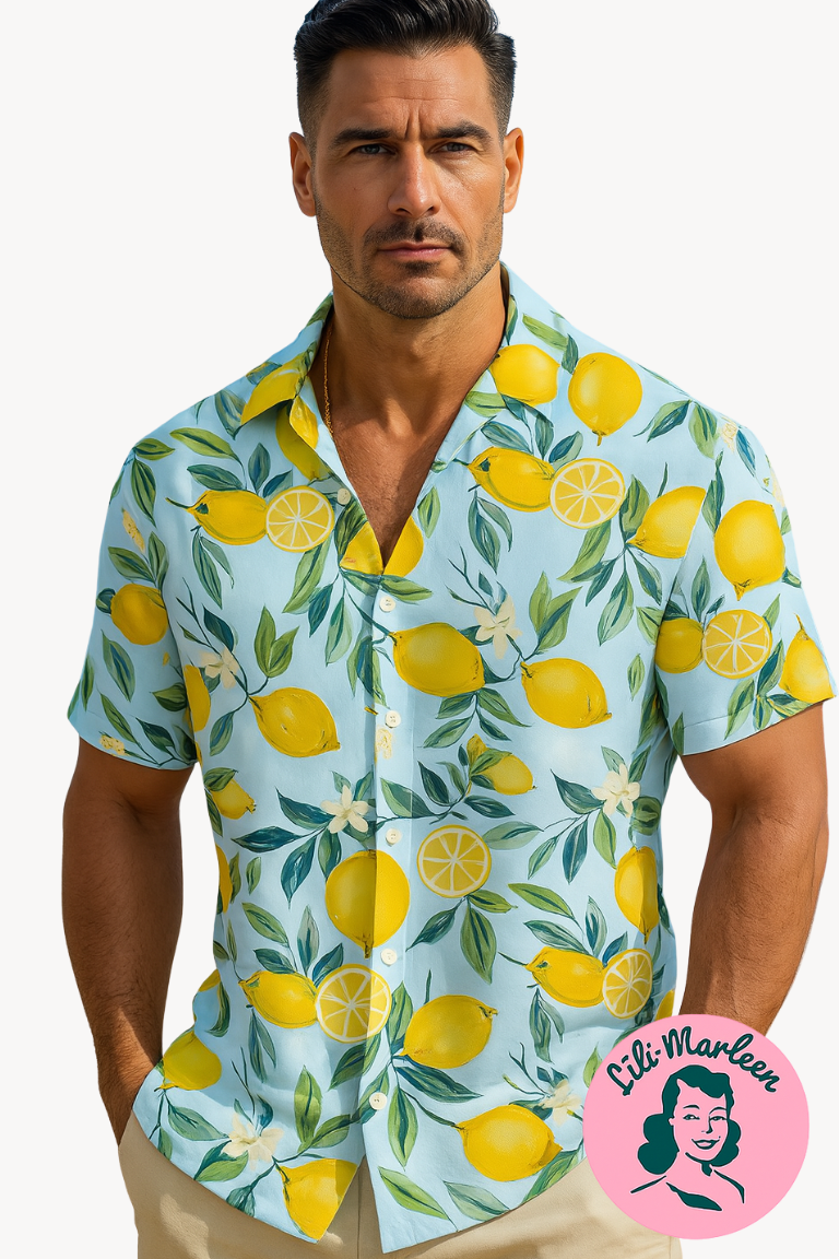 #LemonRebels #SommerSkjorteHerre #RetroCitronSkjorte #VintageStyleForMen #LiliMarleenStyle #StatementShirt #ItalienskVibe