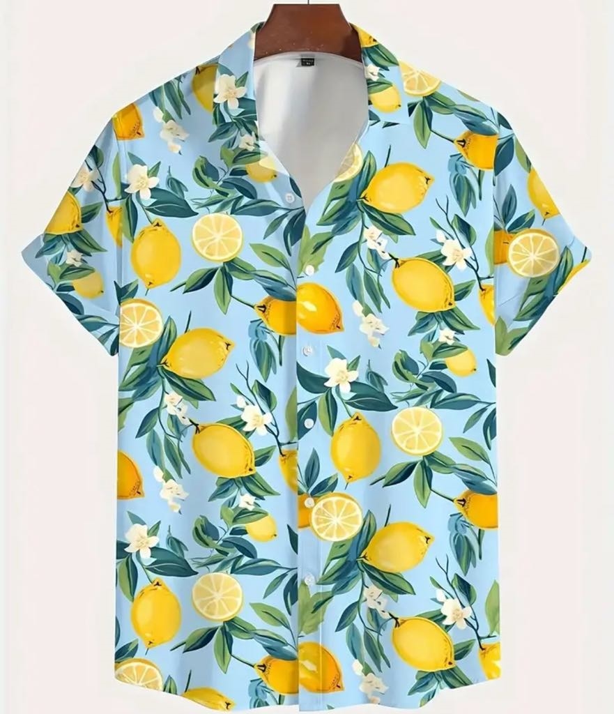 Lemon Rebels – Kortærmet Herreskjorte med Citroner & Retro Italiensk Stemning