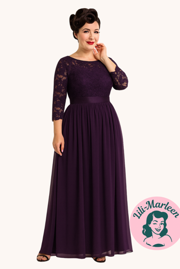 Gør indtryk med Agnete, en lang, elegant gallakjole i en sofistikeret lilla nuance. Kjolens feminine design kombinerer delikate blondeærmer og et let chiffonsskørt, der gør den ideel til gallaer, bryllupper eller andre festlige lejligheder. Denne tidløse lilla kjole er perfekt til at fremhæve din stil og elegance.