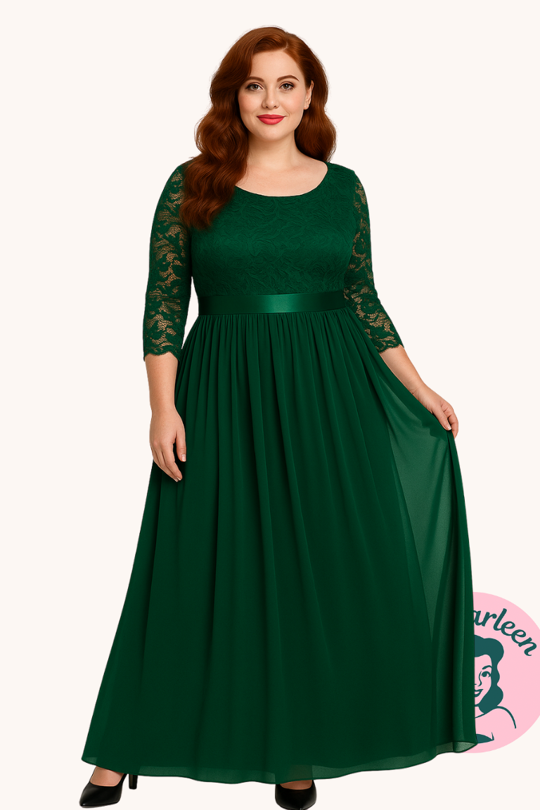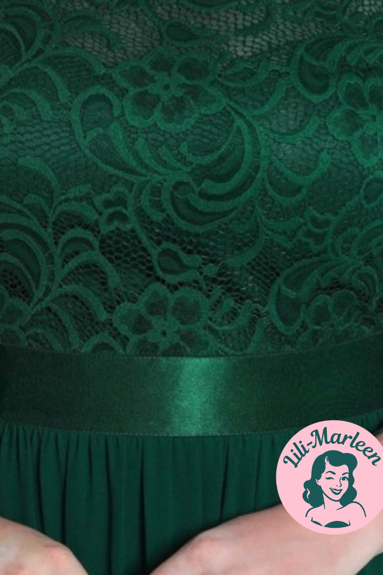 Skab et uforglemmeligt indtryk med Agnete, en elegant og tidløs grøn gallakjole designet til at fremhæve din skønhed ved enhver festlig lejlighed. Med en delikat blondeoverdel og et let chiffonsskørt er denne kjole både feminin og komfortabel – perfekt som brudekjole eller til andre formelle anledninger.