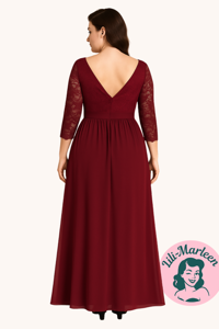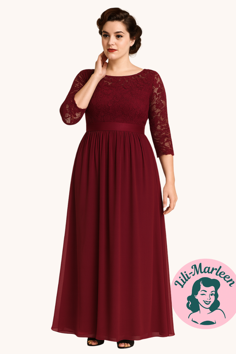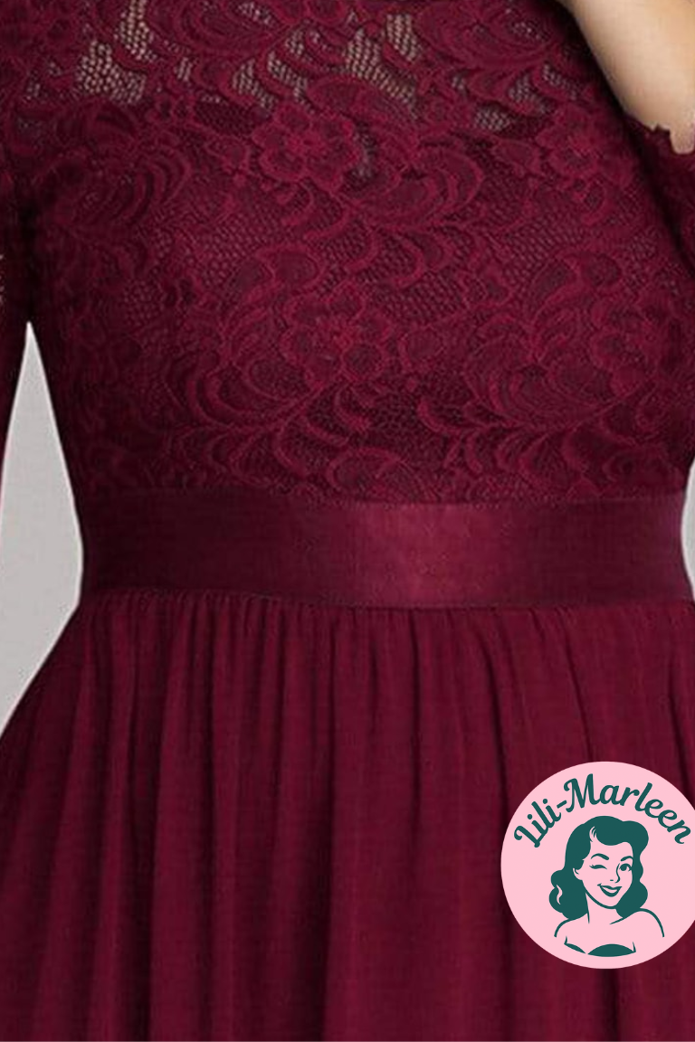 Tilføj en varm og sofistikeret elegance til din garderobe med Agnete, en lang, fortryllende gallakjole i en klassisk vinrød farve. Kjolens feminine design med blondeærmer og et let chiffonsskørt gør den til det perfekte valg til bryllupper, gallaer eller andre store begivenheder. Lad denne tidløse vinrøde kjole fremhæve din unikke stil.