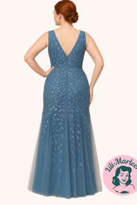 #AstaGallakjole #StøvetBlåKjole #LiliMarleenFashion #Gallakjole #ElegantFestkjole #PailletterOgBlade #FriFragt #HurtigLevering #VintageMode