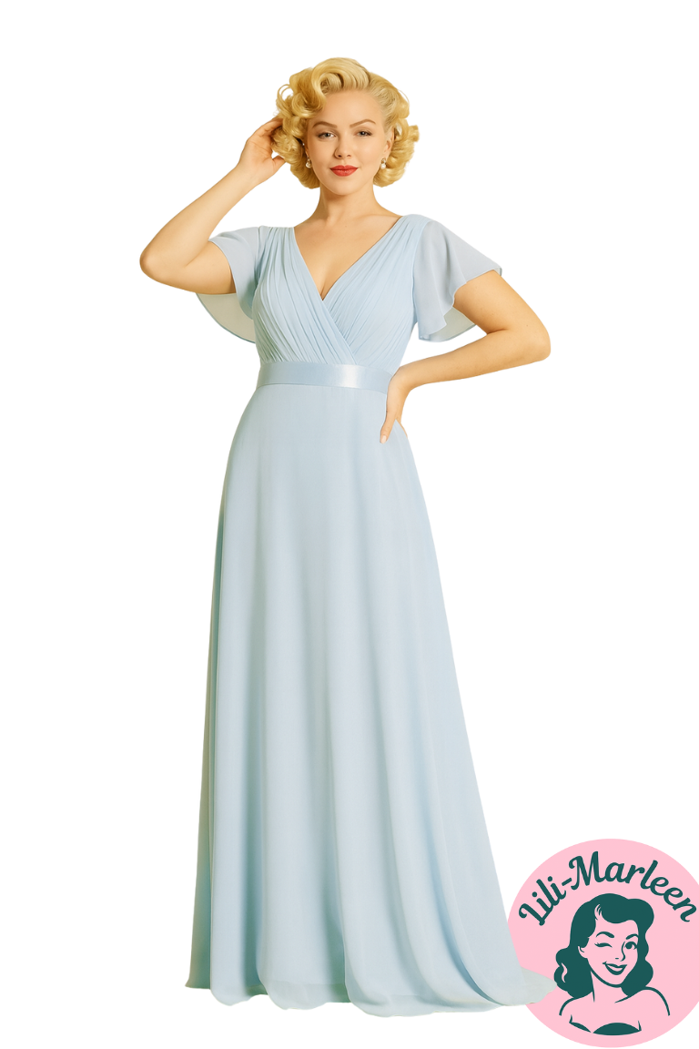 Fremhæv din elegance og femininitet med Cornelia-kjolen i en blid og smuk lys himmelblå farve. Denne tidløse klassiker er en favorit blandt vores kunder takket være sit enkle, sofistikerede design og flatterende pasform. Perfekt til enhver festlig lejlighed som gallafester, bryllupper eller konfirmationer.