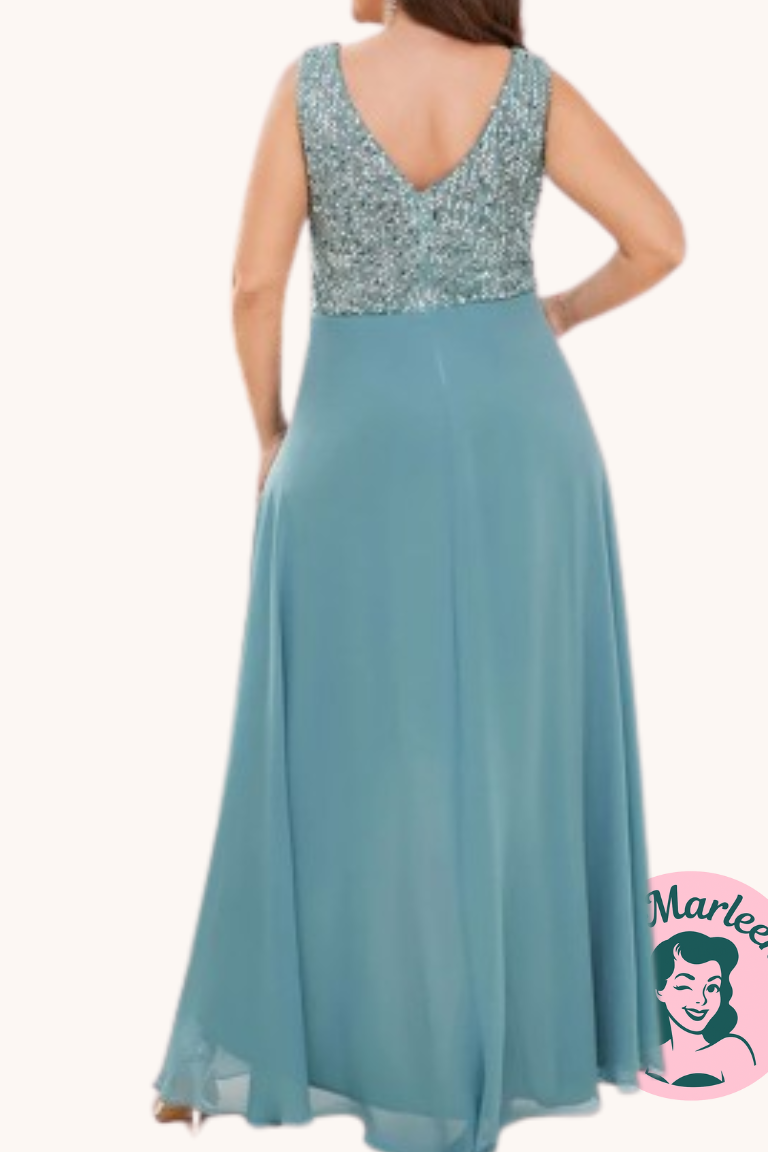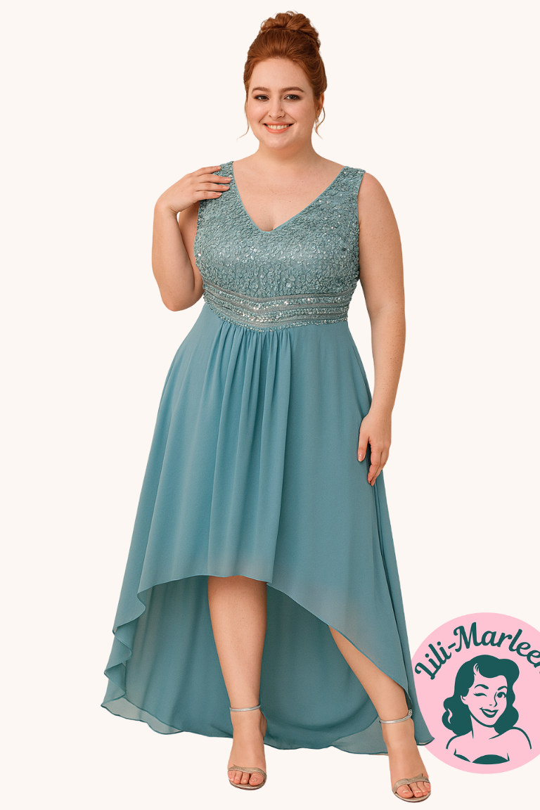 Vi elsker romantik, og det gør Frederikke-kjolen til det perfekte valg til festlige lejligheder. Med en elegant lys støvet blå farve, et smukt high-low design og palietter på overdelen, er denne kjole ideel til bryllupper, gallaer eller andre særlige begivenheder. Kjolens V-udskæring og brede stropper giver den et feminint og flatterende udtryk, der passer til kvinder i alle størrelser.