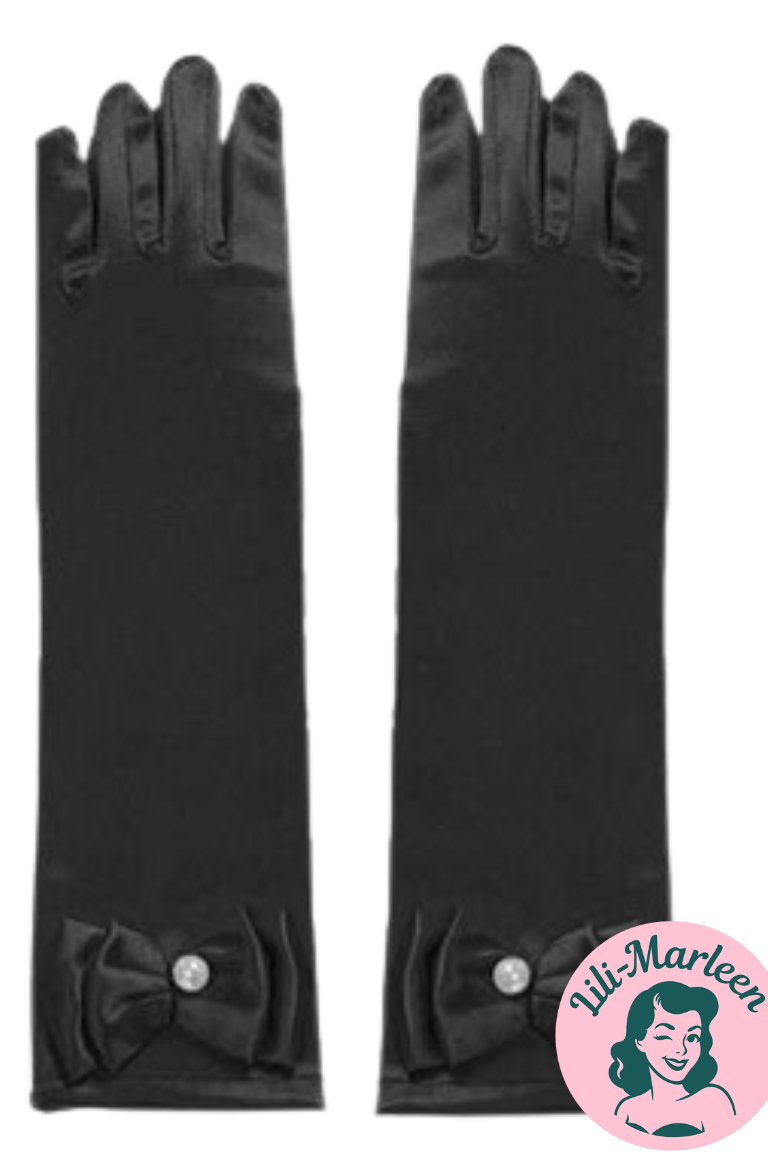 Lange satin festhandsker til børn - søde med sløjfe og lille perle - vi elsker fest og farver! De sødeste satinhandsker til børn, der ligner noget fra en ønskedrøm og vil give din prinsesse følelsen af at være midt i et eventyr.