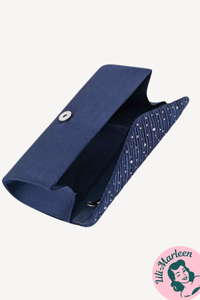 Melodi – Mørkeblå Satin Clutch med Rhinsten & Sølvrem