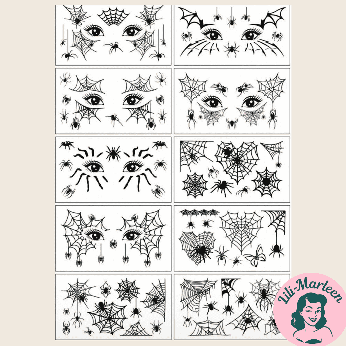 Midlertidige Tatoveringer – Dramatiske øjne – 10 ark med edderkopper og spind