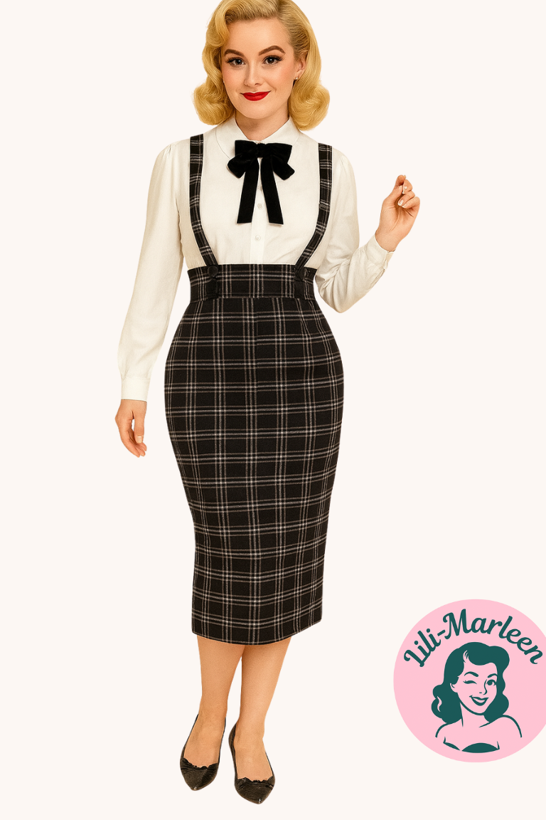 Miss Alba-nederdelen forener det sofistikerede med det smarte. Den højtaljede pencilfacon og det tidløse ternede mønster giver et skarpt og stilrent udtryk, mens de aftagelige seler tilføjer et strejf af retro-charme. Perfekt til dig, der vil udstråle både autoritet og elegance – uanset om du er på kontoret eller til møde med veninderne.