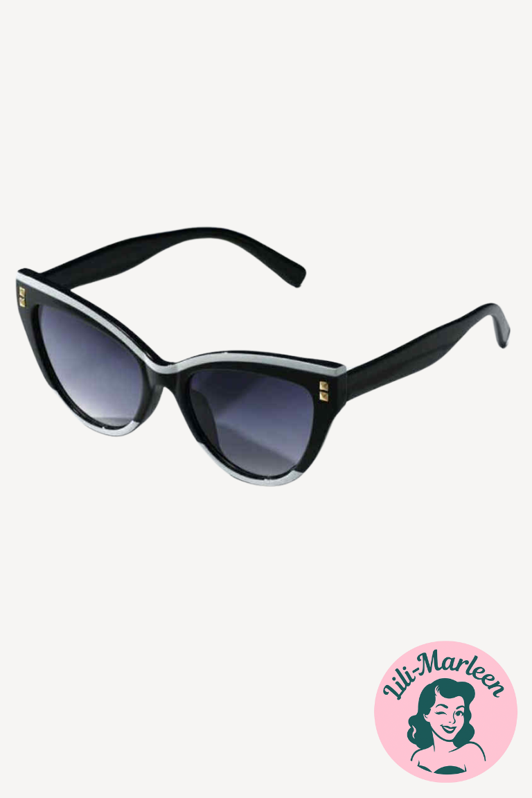 Træd ud som den diva, du er, med disse elegante cat-eye solbriller i sort og hvid. Inspireret af 50’ernes ikoniske stilikoner og opdateret med moderne detaljer som små guldfarvede nitter, giver de dig instant glamour – uanset om du cruiser langs kysten eller drikker espresso på torvet.