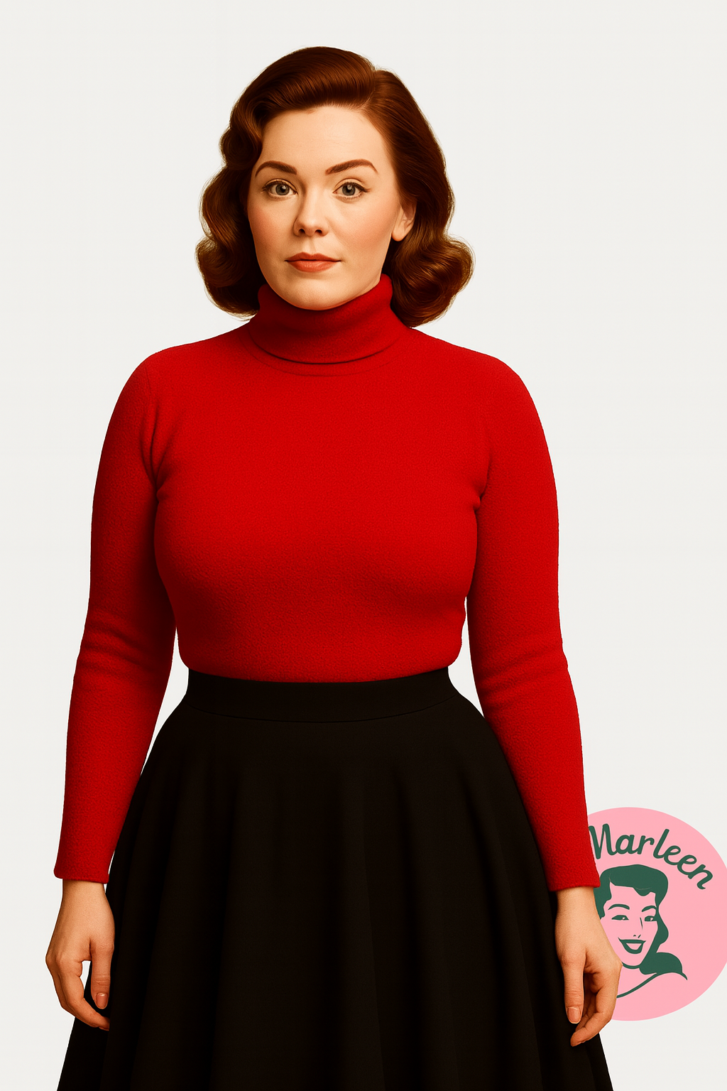 Tilføj et strejf af elegance og alsidighed til din garderobe med denne smukke røde højhals fra Hell Bunny. Perfekt til både hverdagsbrug og festlige lejligheder – en sand klassiker, der aldrig går af mode!