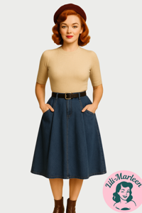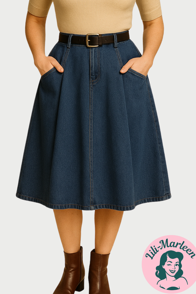 Miss Grace er en elegant og enkel denimnederdel med klassisk A-line snit, der fremhæver taljen og giver en smuk silhuet. Nederdelen er lavet i blødt men kraftigt denim, som gør den behagelig at have på – perfekt til både hverdag og efterårssæsonen. Med baglommer og midi-længde får du en kombination af vintage vibe og praktisk brugbarhed.