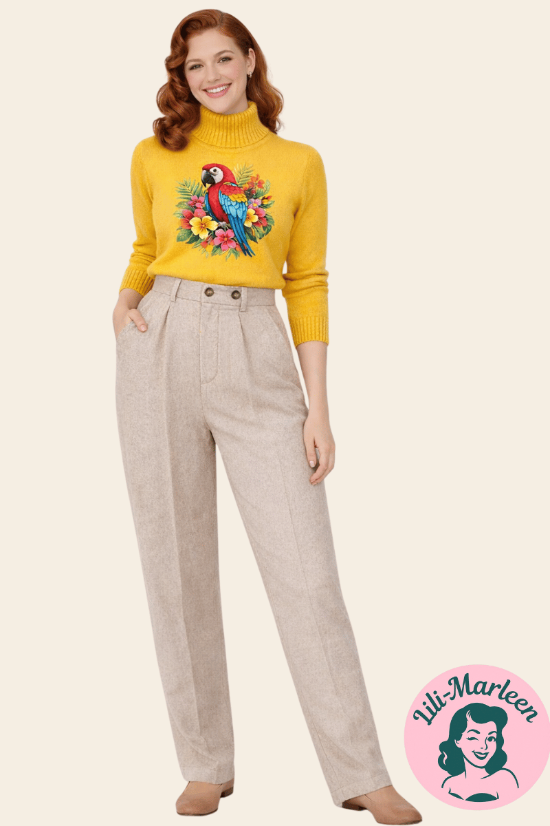 Miss Herringbone – Lyse Vintagebukser med Struktur