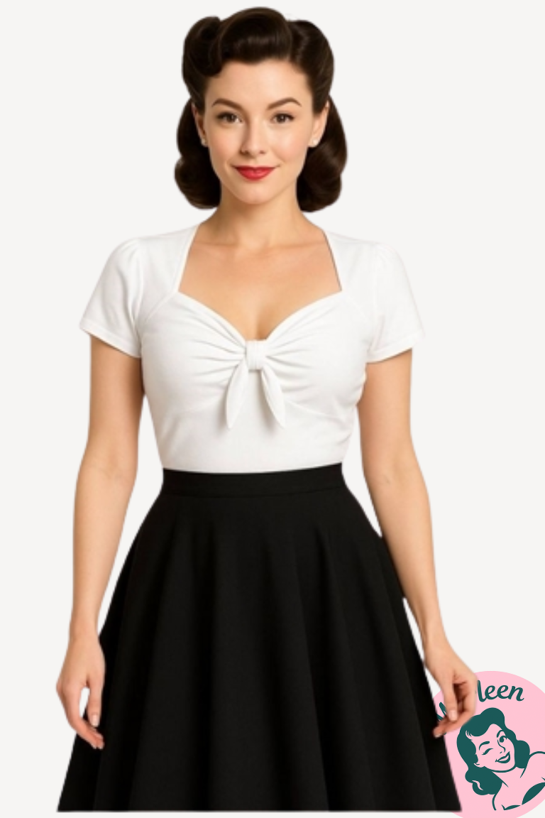 Miss Joan er det stilfulde basisstykke, der binder dit vintage-look sammen med ynde og attitude. Klassisk, blød og altid klar til et flirtende twist.