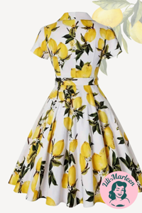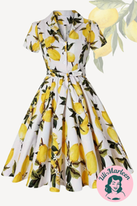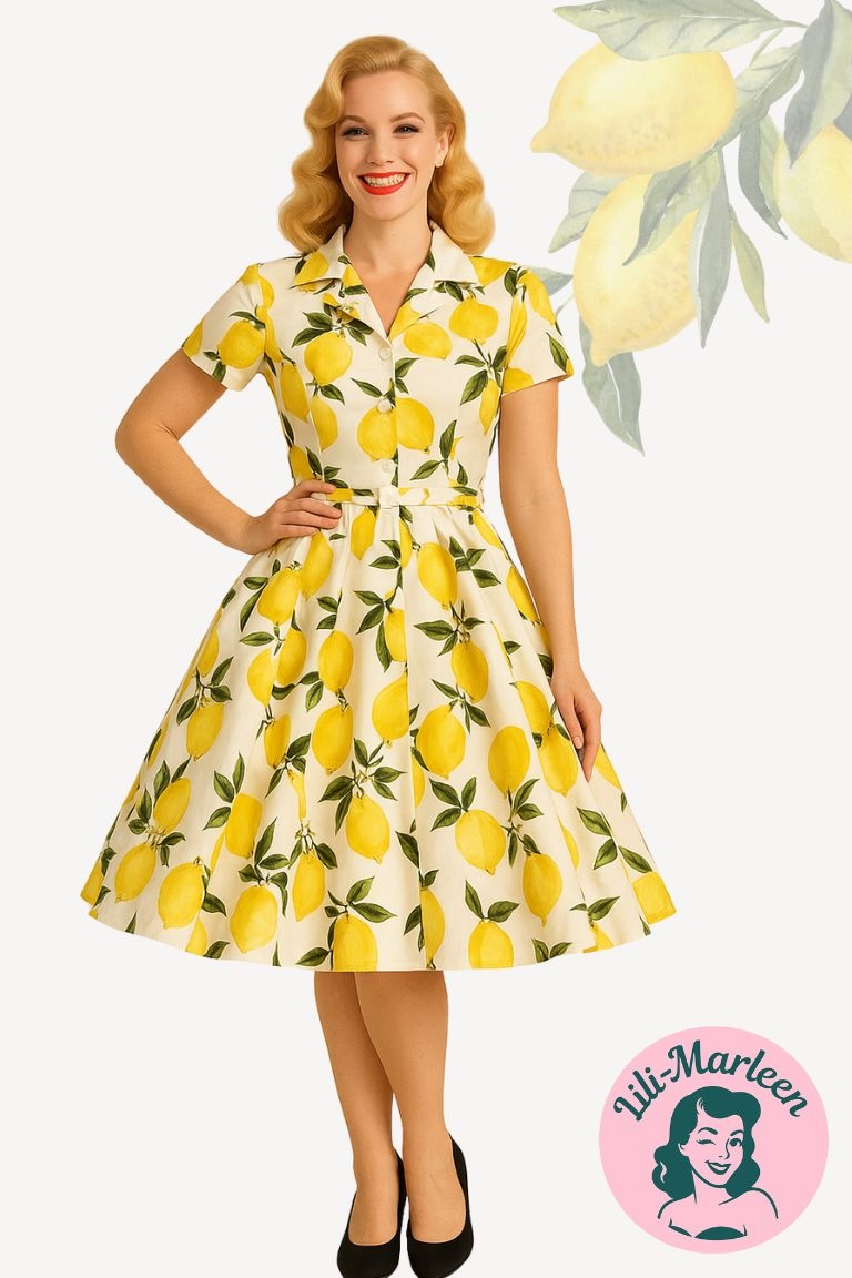 Miss Limonella – Frisk 50’er-inspireret kjole med citronprint og bælte