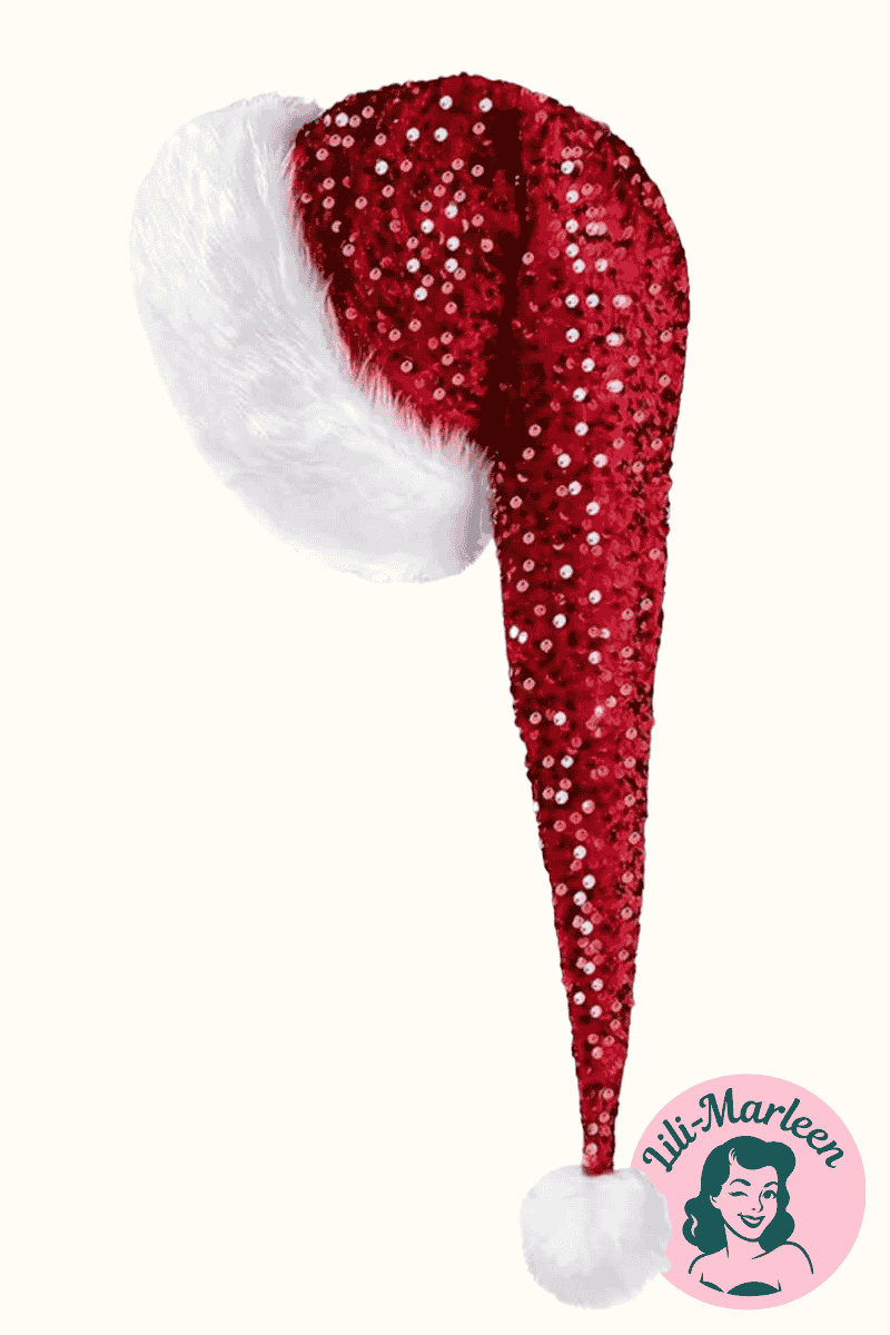 Lad julen funkle med Ruby Glam – en uimodståelig nissehue i dyb rubinrød pailletstof, der fanger lyset og spreder ren juleglæde. Den luksuriøse hvide pelskant og bløde kvast giver et klassisk, festligt look med et strejf af glamour. Perfekt til julefrokoster, fotoshoots, events eller når du bare vil sprede julehumør med stil.