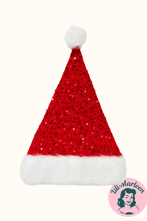 Klassisk julehue med funklende pailletfinish