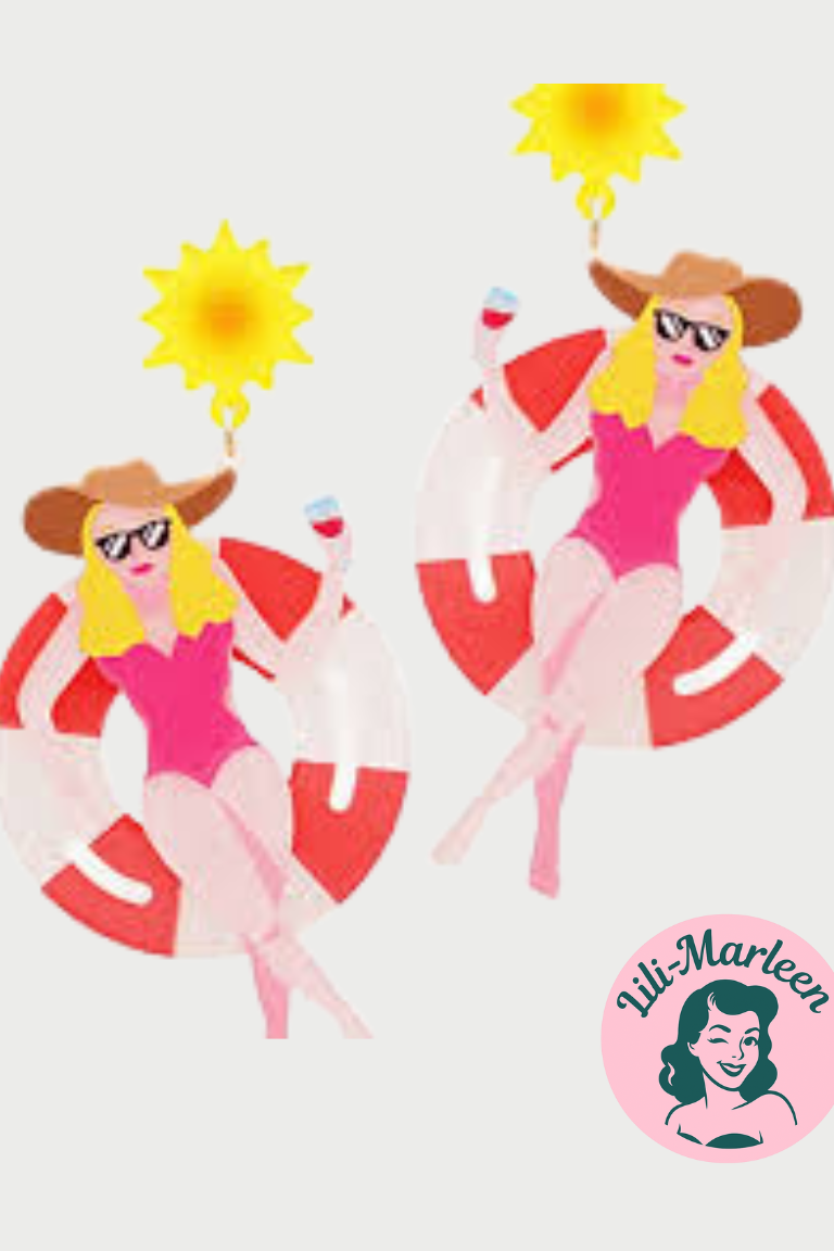 Tjek disse super søde øreringe med en diva, der nyder solen og sommeren med en drink. Vi elsker øreringe, der er lidt anderledes, lidt skæve og helt sikkert feminine og sjove. Disse øreringe er ingen undtagelse, så hop i vandet med et par skønne badenymfe-øreringe.