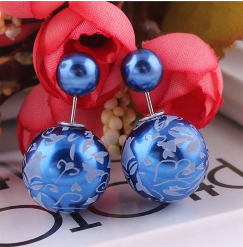 Øreringe - Dobbelt perle øreringe - blå med blonde
