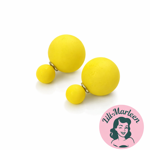 Skab et markant og feminint udtryk med disse dobbelte perleøreringe i gul – et klassisk design med et moderne twist. Øreringene består af to kugleformede perler i forskellige størrelser, der tilsammen skaber et elegant og iøjnefaldende look.
