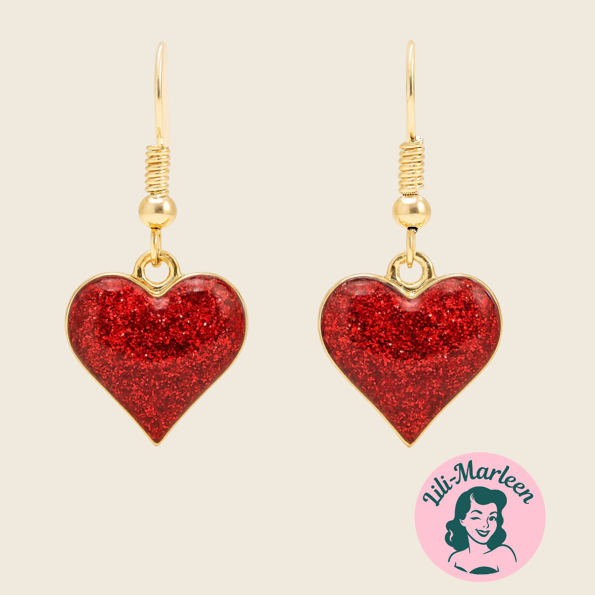 Disse smukke hængeøreringe med røde hjerter tilføjer et romantisk og levende touch til dit look.