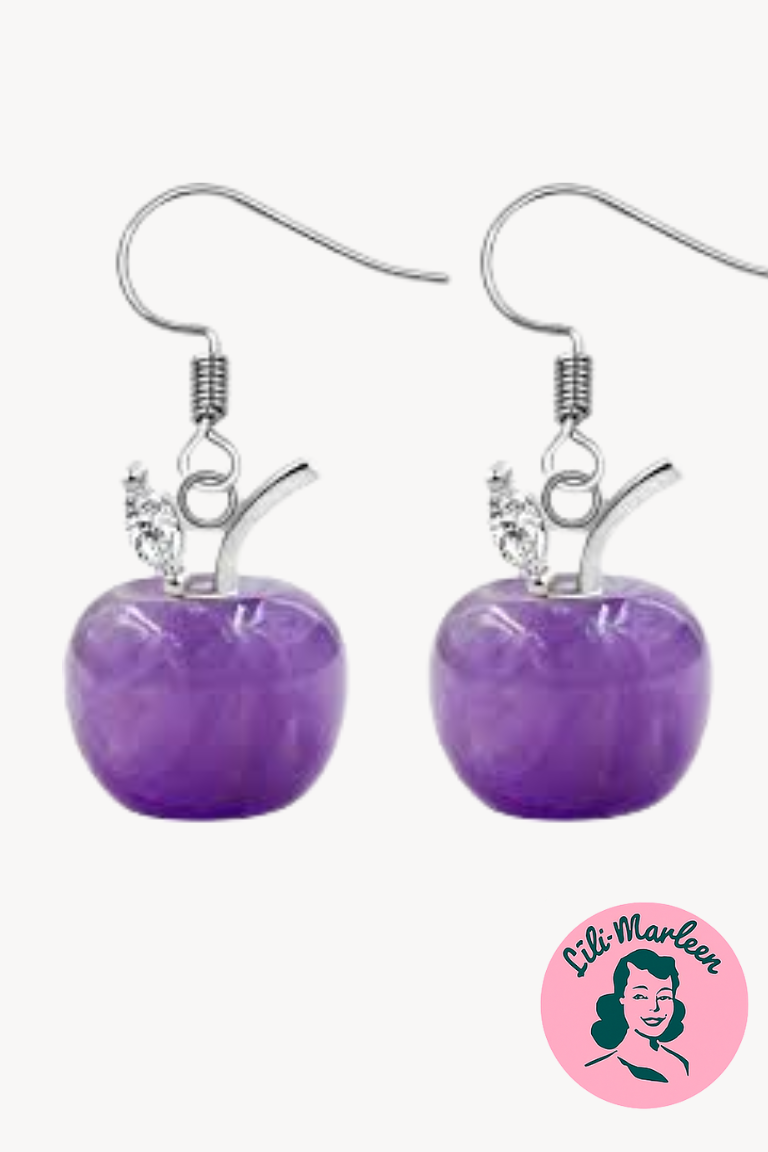 Et frækt, farverigt og feminint twist til dit outfit. Disse lilla æbleøreringe balancerer perfekt mellem legesygt og elegant – ideelle til både hverdag og fest.