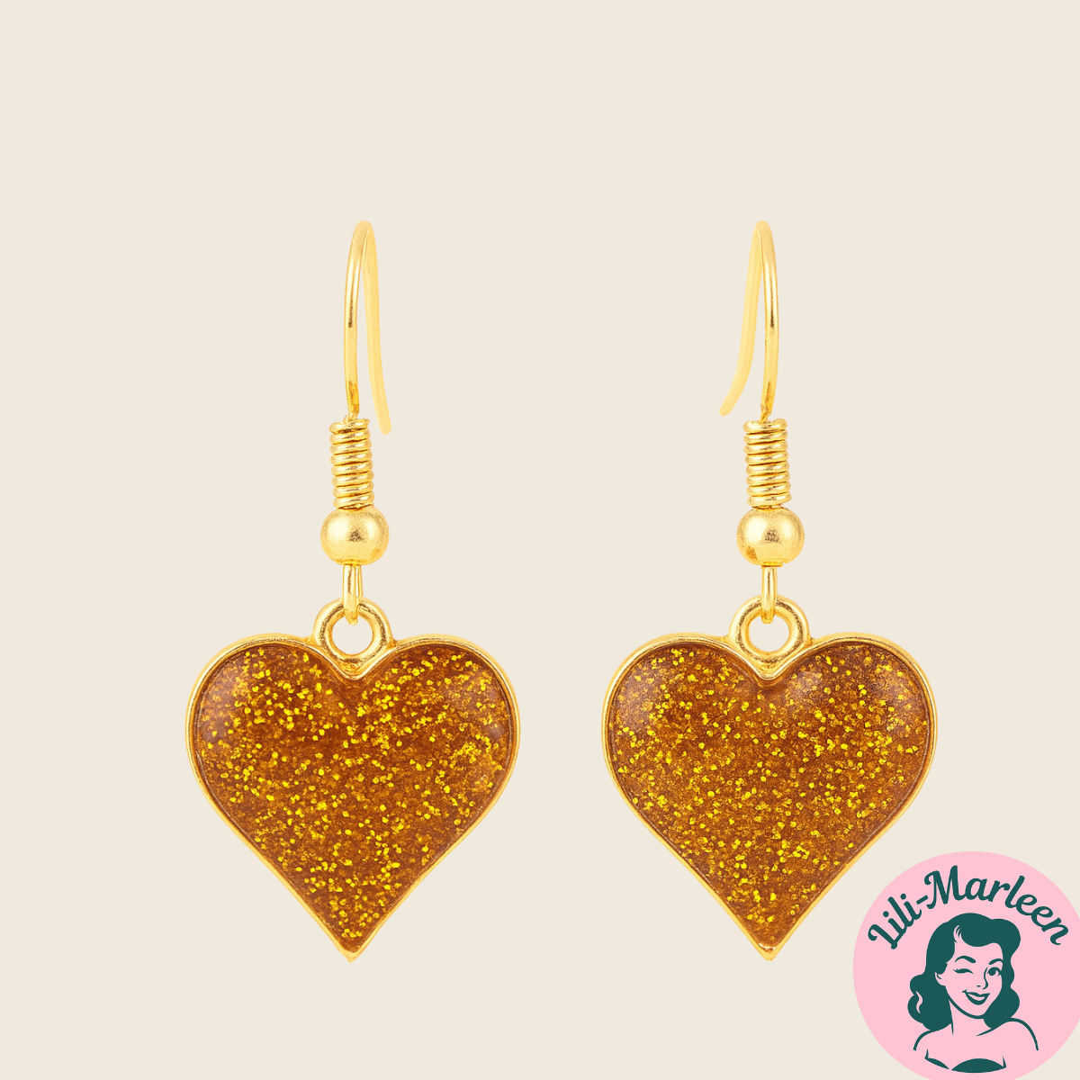 Design: Hjerteformede hængeøreringe i guld